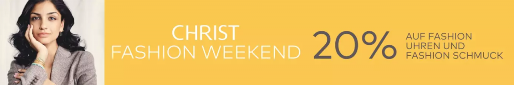 Profitiere während dem CHRIST Fashion Weekend von 20% Rabatt auf Fashion Uhren und Fashion Schmuck.