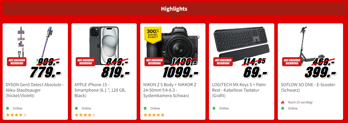 Wie immer findet ihr in der Shop-Übersicht einige ausgewählte MediaMarkt Deals.