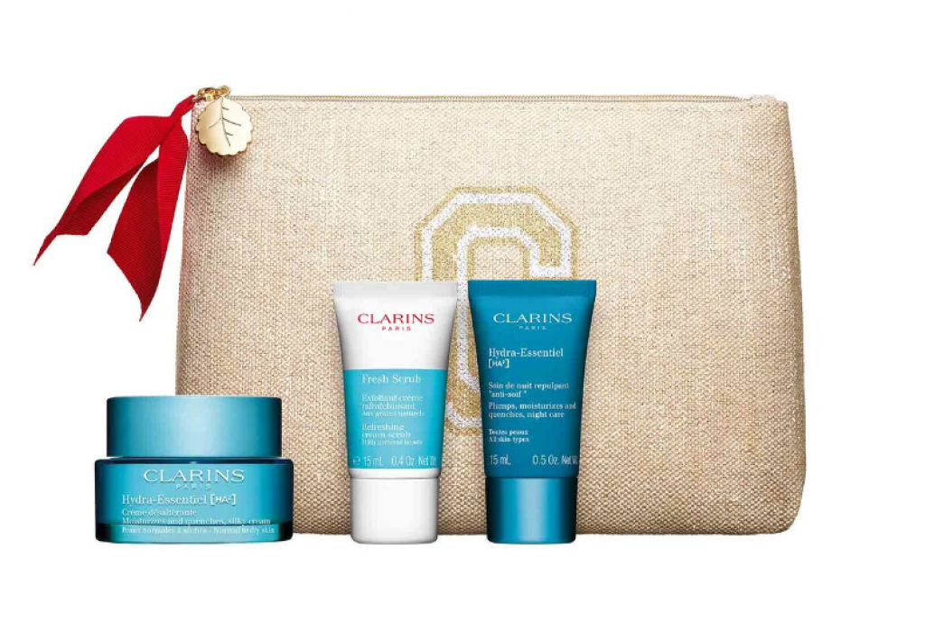 Im Clarins Hydra-Essentiel Cream Set finden Sie alles, was Ihre Haut braucht, um perfekt mit Feuchtigkeit versorgt zu sein. Das Pflegeset enthält die Hydra-Essentiel Feuchtigkeitscreme für Tag und Nacht, angereichert mit dem biologischen Extrakt der Goethe-Pflanze, der den natürlichen Feuchtigkeitsgehalt der Haut aktiviert. Ihre Haut ist nicht nur intensiv mit Feuchtigkeit versorgt, sondern auch geschmeidig, frisch, glatt und voller Energie. Das Gesichtspeeling entfernt sanft Unreinheiten und abgestorbene Hautzellen und verleiht der Haut neue Frische und Ausstrahlung. Das Set enthält eine Hydra Essentiel Day Cream 50 ml, eine Hydra Essentiel Night Cream 15 ml und ein Frash Scrub 15 ml – alles in einer grossen Kosmetiktasche.