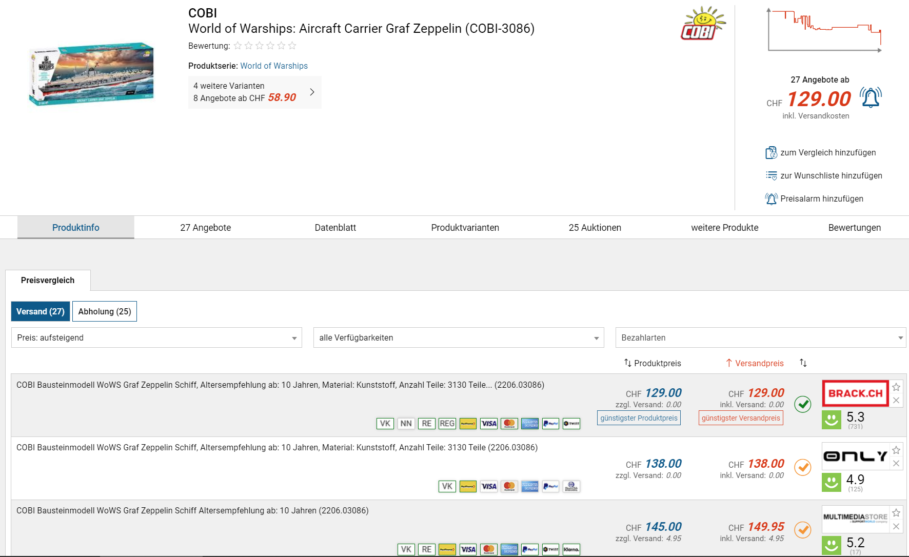 Die Graf Zeppelin ist momentan im Ausverkauf bei Brack.ch. Der Normalpreis liegt bei ca. CHF 160.-