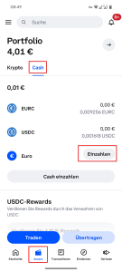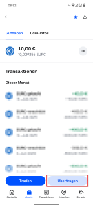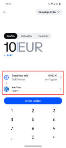 Traden -> Kaufenund wandle dein Euro-Guthaben in den Stablecoin EURC um. - Guthaben auf die COCA-Karte transferieren: