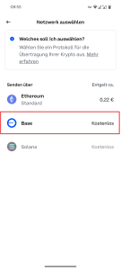 - WICHTIG: Wähle unbedingt das kostenfreie BASE-Netzwerk für die Übertragung aus!