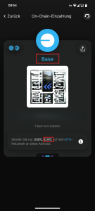 - Sende deine EURC von Coinbase an die angezeigte Adresse.
