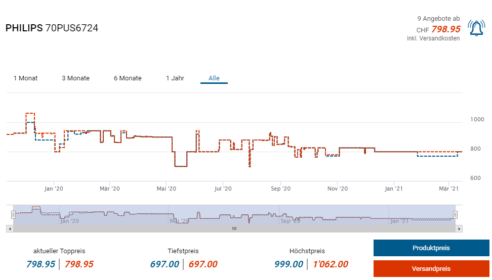 Einerseits wäre da der 70PUS6724 mit Ambilight für CHF 656.65 anstatt CHF 798.95. Laut toppreise ein neuer Bestpreis und vom Preis/Leistung-Verhältnis wohl unschlagbar.
