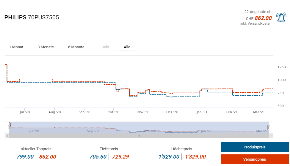 Ebenfalls interessant dürfte der Preis für das Modell 70PUS7505 sein. Hier kriegt den Fernseher für CHF 699.15 anstatt CHF 862.- Beachtet aber, dass dieser kein Ambilight hat.
