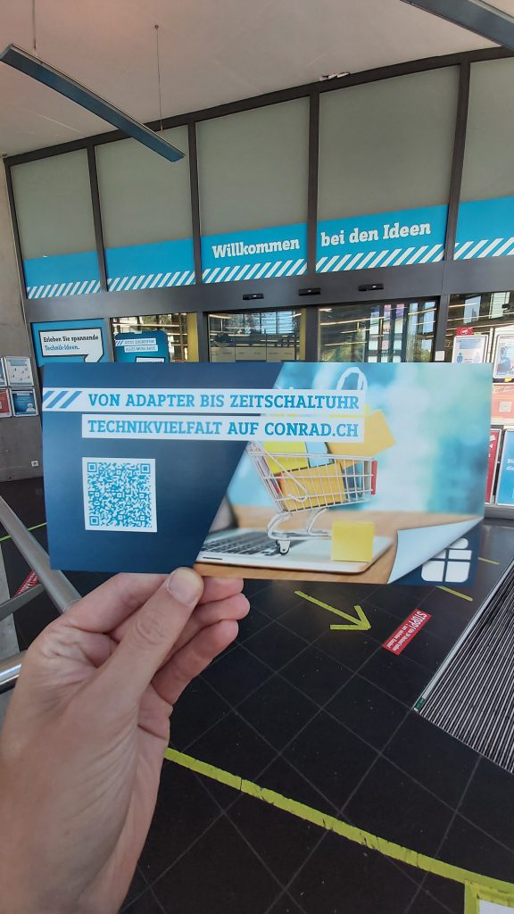 War gerade im Conrad Dietlikon wegen der 50-%-Aktion und habe gesehen, dass die auch gedruckte Gutscheine verschenken. Nachdem die Ausbeute lausig war, weil schon alles weg war (Obergeschoss sogar schon geschlossen), ist das wenigstens ein Trost.