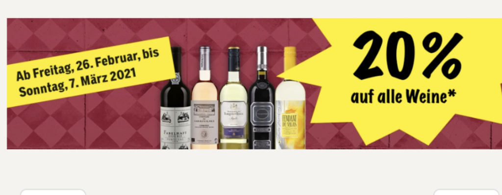 Bis am 7. März profitieren Sie von 20% Rabatt auf alle Weine (*exkl. Aktionen, Schaumweine, Champagner, Weinmesse Weine, Riegger Weine, Trophy und Raritäten).