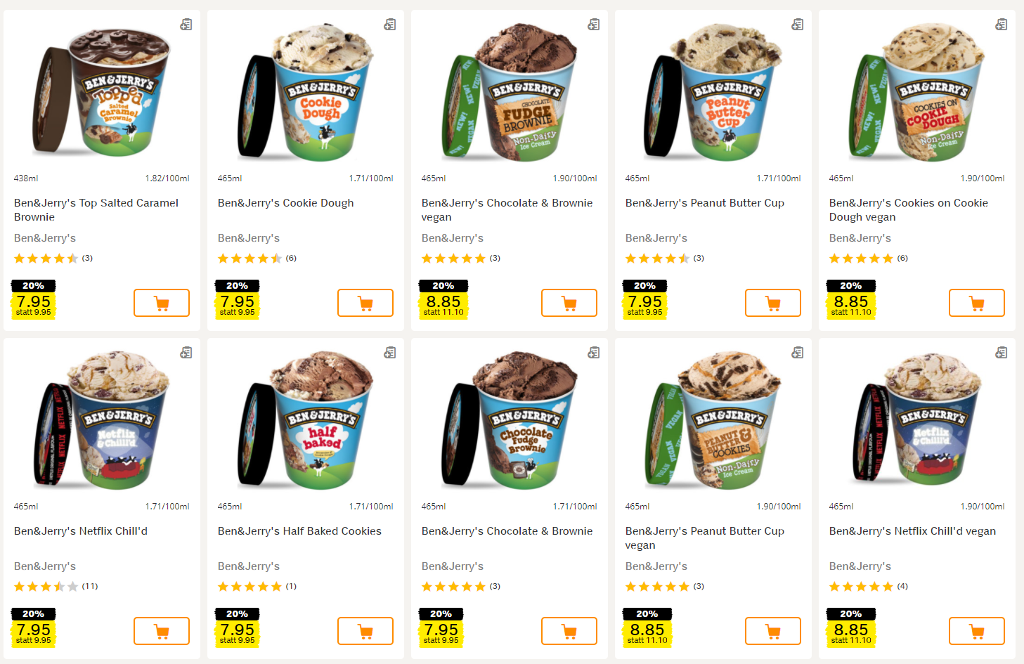 Bei Coop gibts derzeit 20% Rabatt auf Ben & Jerry’s Glacédosen à 438/465ml Packungen. Wie lange das Angebot noch gilt kann ich euch aber nicht sagen, habe es zuerst vor etwa 4 Tagen gesichtet.