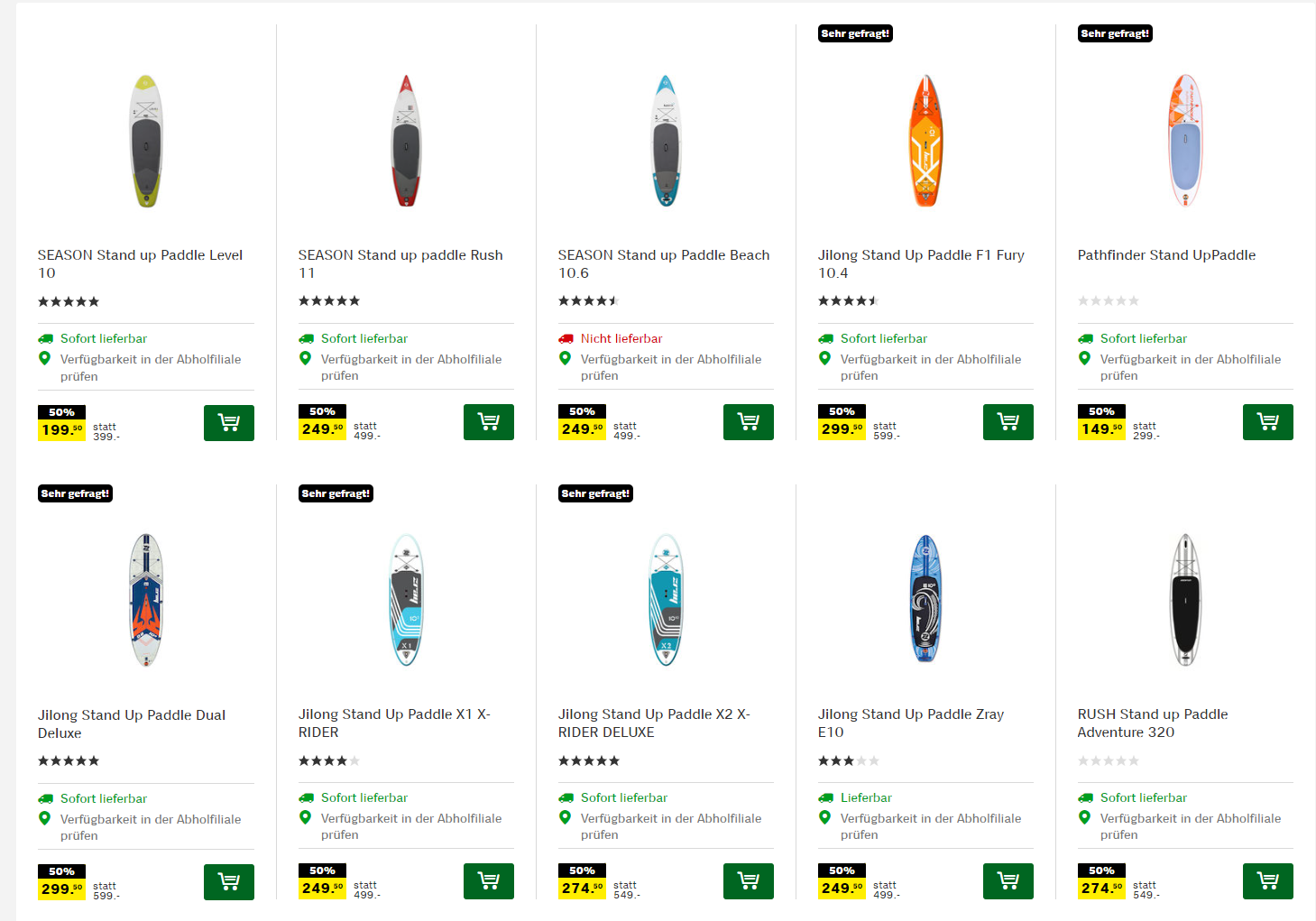 Bei Coop Bau+Hobby gibt’s derzeit 50% Rabatt auf alle Stand Up Paddles. Zu finden sind insgesamt 12 Modelle ab 149.90 Franken. Ausserdem könnt ihr weitere 10 Franken einsparen, indem ihr euch für den B+H Newsletter anmeldet!
