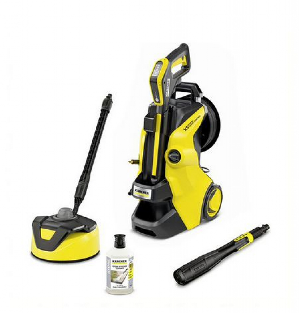 Dank integriertem Bluetooth lässt sich der K 5 Premium Smart Control-Hochdruckreiniger mit der Kärcher Home & Garden App verbinden. Dadurch kann der Nutzer via Smartphone in vielen Reinigungssituationen und bei vielen Reinigungsobjekten optimal unterstützt werden – und effizientere Reinigungsergebnisse erreichen. Die App bietet viele nützliche Funktionen wie den Anwendungsberater mit hilfreichen Tipps und Tricks, eine Aufbauanleitung, Wartungs- und Pflegehinweise sowie das Kärcher Serviceportal. Darüber hinaus verfügt das Gerät über einen Boost Mode für extra Power, G 180 Q Smart Control-Pistole mit LCD-Display und das 3-in-1-Multi Jet-Strahlrohr. Die Druckeinstellungen werden entweder direkt an der Pistole vorgenommen oder aus der App auf die Pistole übertragen. Über das LCD-Display lässt sich überprüfen, welche Druckstufe eingestellt ist, ob der Boost ausgelöst werden kann oder ob sich das Gerät noch im Ruhemodus befindet. Inkl. Home Kit mit Flächenreiniger T 5 und 1 Liter Steinreiniger 3-in-1. Weitere Ausstattungsdetails sind die Schlauchtrommel, das Plug ’n’ Clean-Reinigungsmittelsystem, der Aluminium-Teleskopgriff und die Parkposition für jederzeit griffbereites Zubehör.