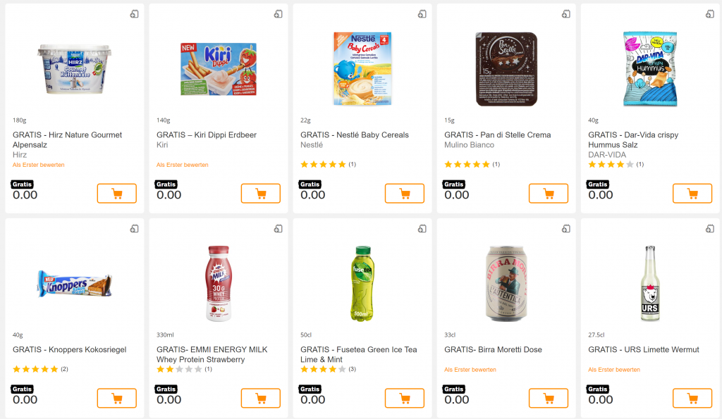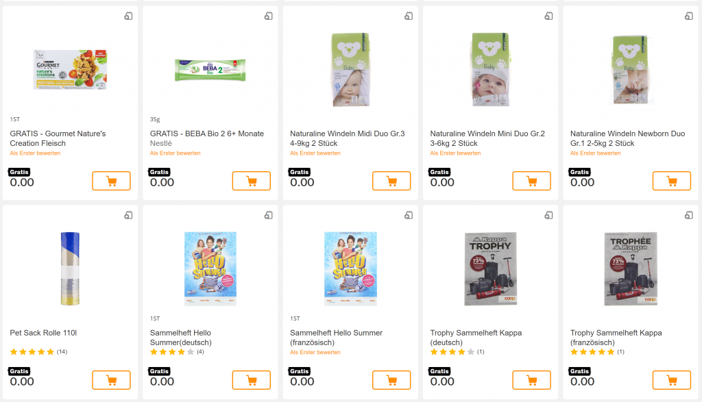 Zusätzlich kombinierbar mit einer wirklich grossen Anzahl an gratis Produkten. Die gratis Produkte gibt’s wahrscheinlich solange Vorrat.
