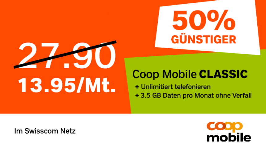 Derzeit gibt’s wieder das Abonnement Coop Mobile Basic in Aktion für 13.95 Franken pro Monat! Bei diesem Abo profitiert ihr von folgenden Leistungen: