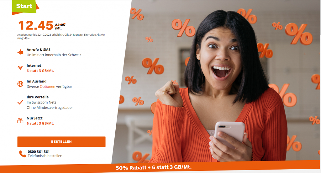 Bei Coop Mobile gibt es wieder das Coop Mobile Start Abo für CHF 12.45 pro Monat (Swisscom-Netz, Start: unlim. Telefonie & SMS, 3GB Daten ohne Verfall).