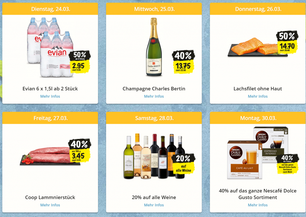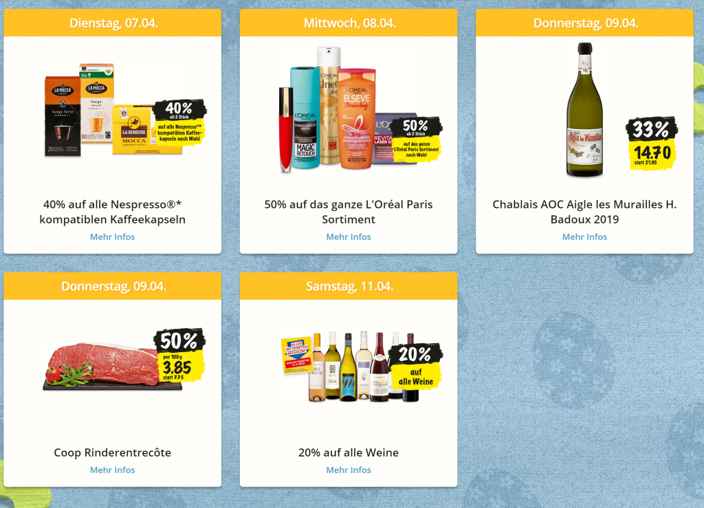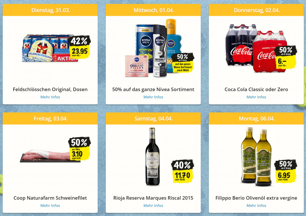 Bei Coop gibt’s nun jeden Tag bis zum 11.4. ein Tagesangebot.