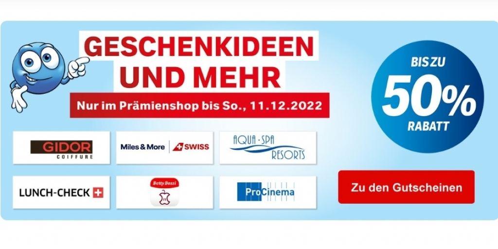 Beim Coop Prämienshop bekommt man bis Sonntag bis zu 50% auf diverse Gutscheine.
