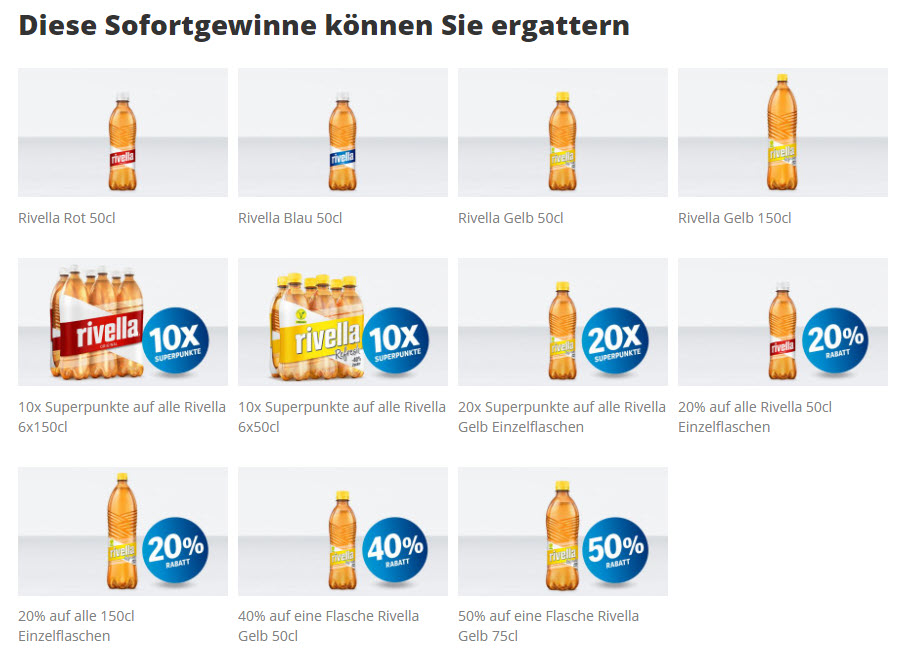 Ich hatte immerhin bis jetzt 1x 0,5L gratis Rivella gelb und 1x 0,5L gratis Rivella blau. Ja, der Rest war Gugus, aber über die Gratis-Rivellas beklage ich mich nicht 😁