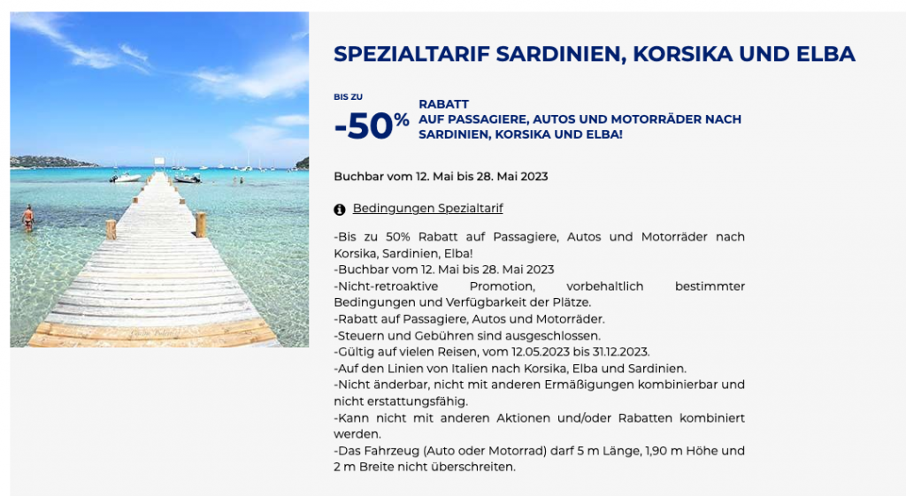 Corsica Ferries mit bis zu 50% Rabatt bei Buchung bis 28.05.23