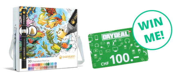Unter allen Wettbewerbsteilnehmern verlosen wir diese Woche ein Brushpen-Set von Chameleon und eine DayDeal-Geschenkkarte im Wert von insgesamt CHF 265.–!