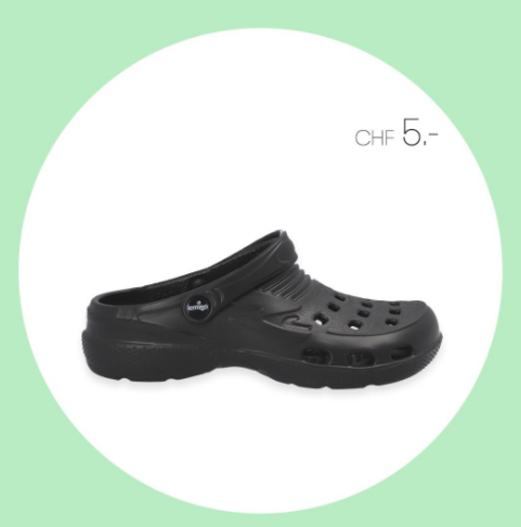Gerade gesehen: Bei Vögele Shoes gibt’s nur noch heute einen Crocs-Klon (je eine Variante für Herren und Damen) für fünf Franken.