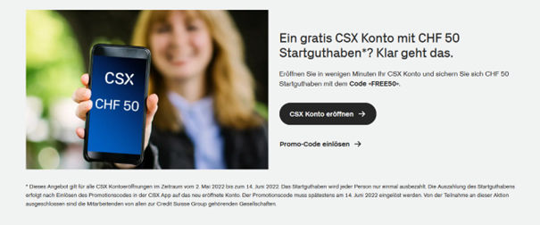 Bei CSX gibts wiedermal die 50.- Neueröffnungsguthaben: