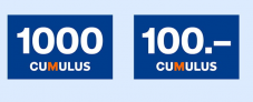 CHF 100.– und 1’000 Bonuspunkte gutgeschrieben (zusätzlich zu den üblichen Cumulus-Punkten*).