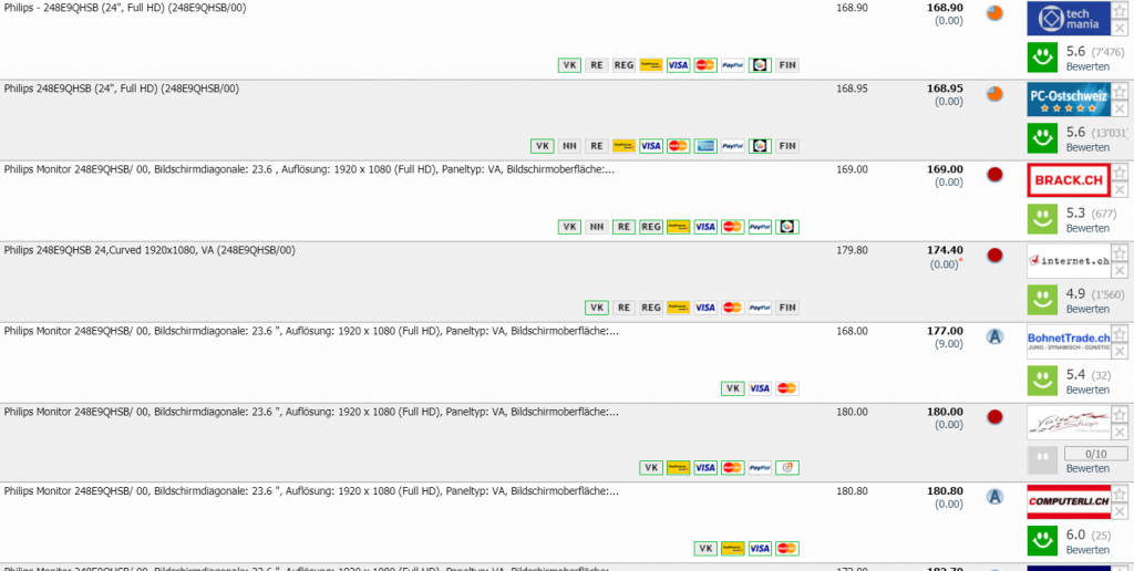 Zweitbester Preis im Moment: CHF 168.90, Bestpreis: CHF 168.-