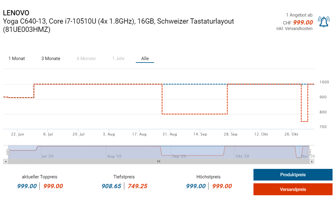 Beim Lenovo-Shop gibts derzeit bis Ende November den Cyber-Sale mit Tiefpreistgarantie - will heissen, wenn ihr bis zum Ende des Ausverkaufs ein Produkt günstiger beim Lenovo Store vorfindet als dass ihr es gekauft habt, wird euch die Differenz zurückerstattet. Leider ist aber nicht ganz klar, ob das dann auch für andere Shops gilt.