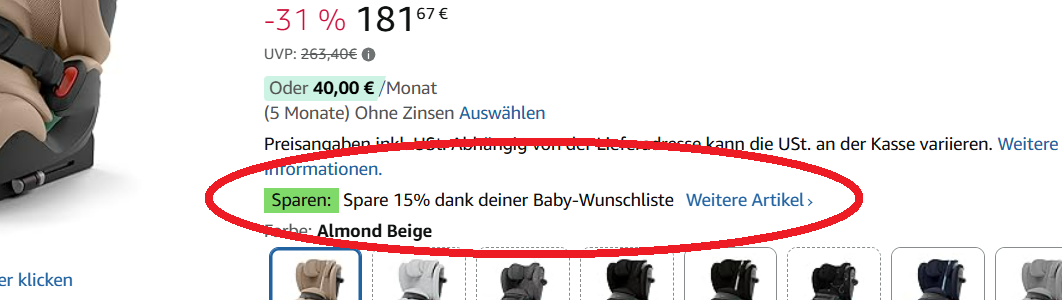 Und auch da kann man noch 15% Baby Wunschliste abziehen.