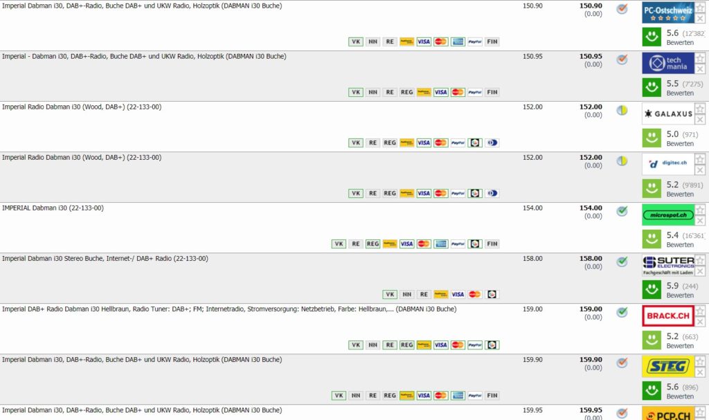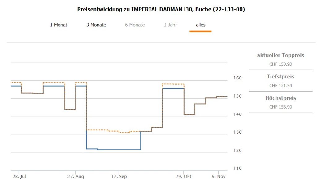 Bisher gab’s das Teil in der Schweiz nie unter CHF 132, momentan liegt der zweitbeste Preis laut toppreise bei CHF 150.90