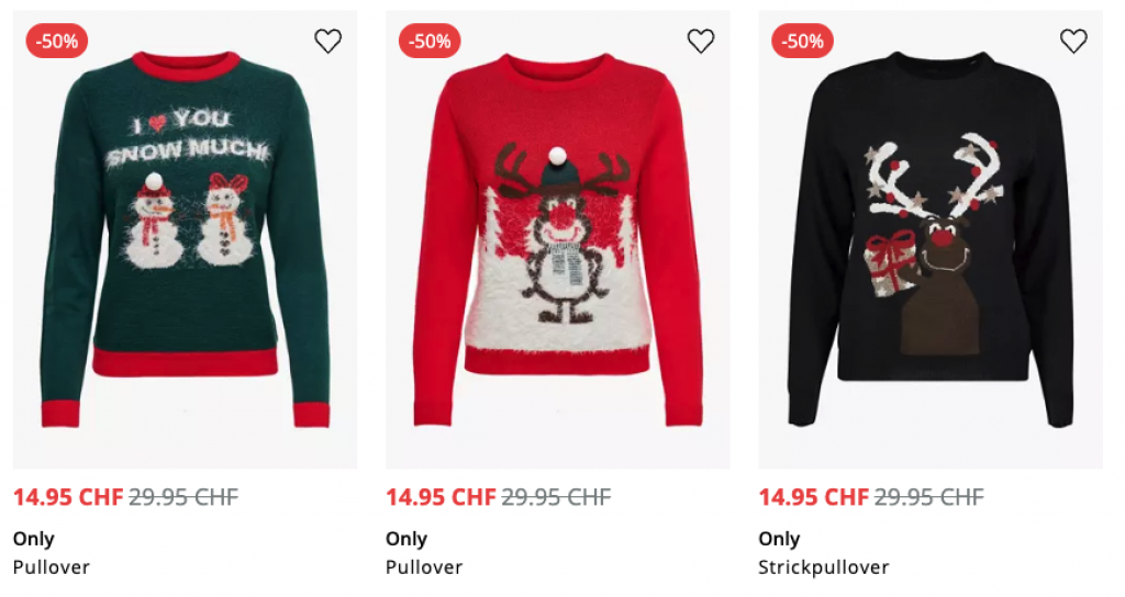 Ebenfalls für CHF 14.95 gibt es noch weitere Weihnachtspullis von Only: