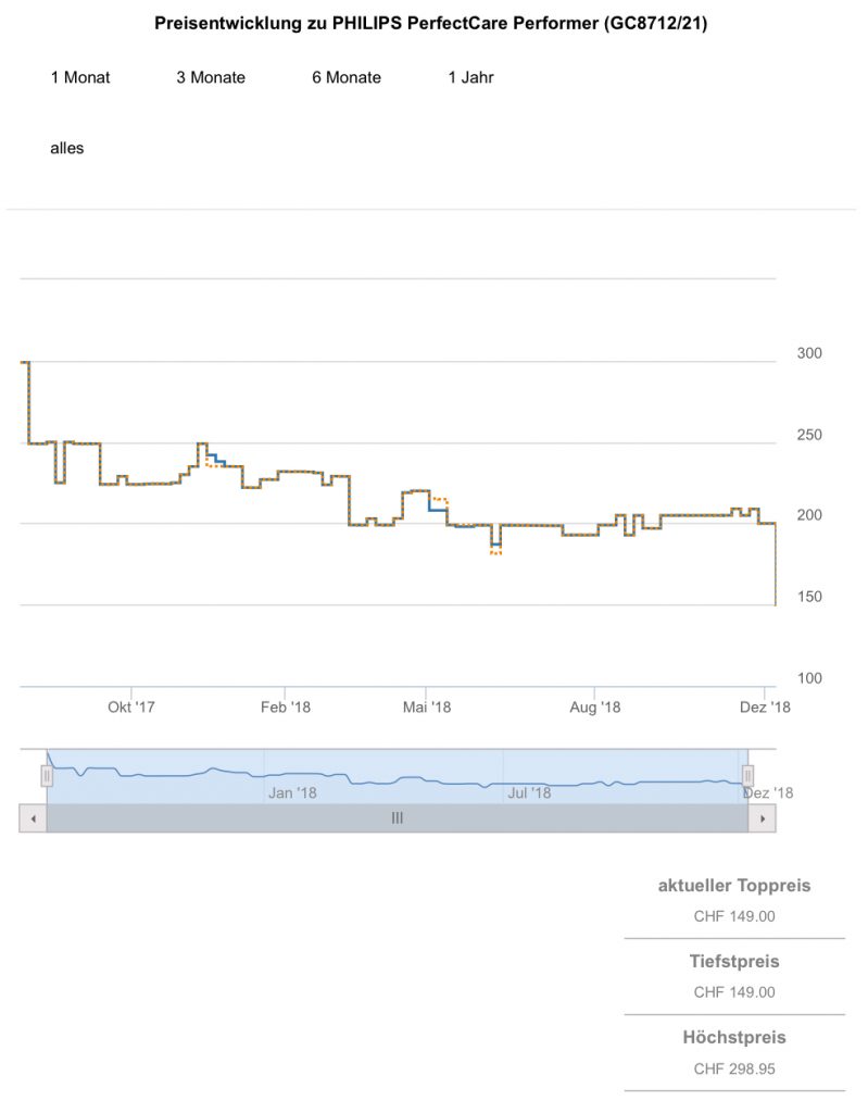Gemäss toppreise war der bestprice bislang bei 181.50 CHF, der zweitbeste Preis aktuell liegt bei 199.95 CHF.