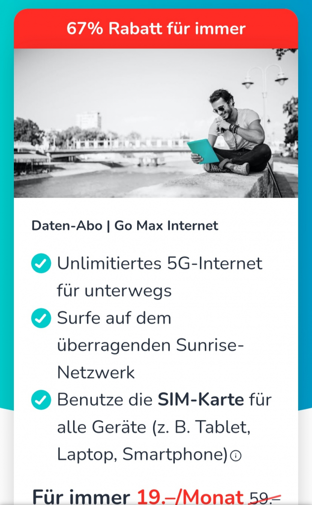 Yallo Daten-Sim mit unlimitiertem 5G Internet für alle Geräte. Anstatt CHF 59.- nur CHF 19.-