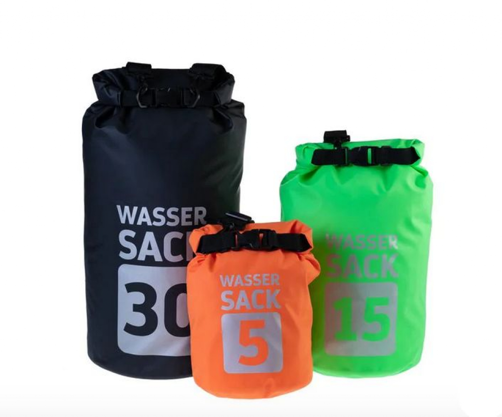 Mit diesem 3er Wassersack Set kannst du in Zukunft deine Gegestände, Kleider oder anderes vor Wasser bewahren. In diesem Set sind 3 verschiedene Grössen enthalten: 5 Liter, wenn du mal nur deine Wertgegenstände wie Handy Portemonnaie oder Schlüssel mitnehmen musst. 15 Liter, eignet sich perfekt für ein normaler Tag am See oder auf dem Boot, da in diesen Bag locker alles reinpasst was man so braucht. Falls man aber doch mal einige Sachen mehr mitnehmen muss, gibt es noch den 30 Liter Bag.