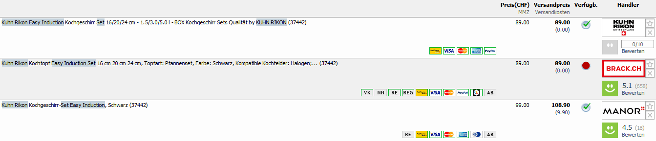 Bei Kuhn Rikon, Brack und Manor gibt es das Set auch (in Aktion), hier bezahlt ihr aber immernoch 89.- bzw. 99.- CHF (ursprünglich kostete das Set mal 139.- CHF).