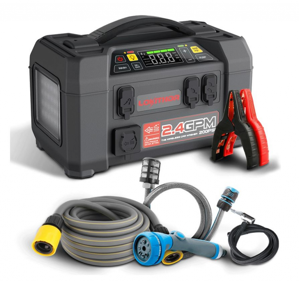 Daydeal - Lokithor Starthilfegerät 2500A mit Kompressor & Hochdruckreiniger 5-in-1-Multifunktions-Starthilfegerät