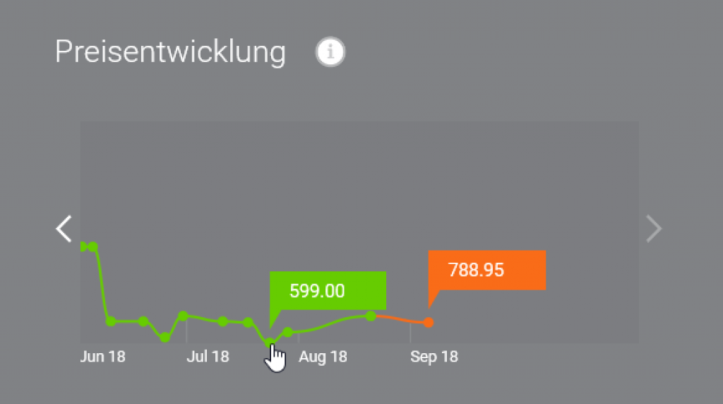 Einen Preischart gibt es hierfür leider nicht auf toppreise, aber auf comparis und dieser sagt best price bislang waren 599.- CHF. Der zweitbeste Preis liegt aktuell bei 788.95 CHF.