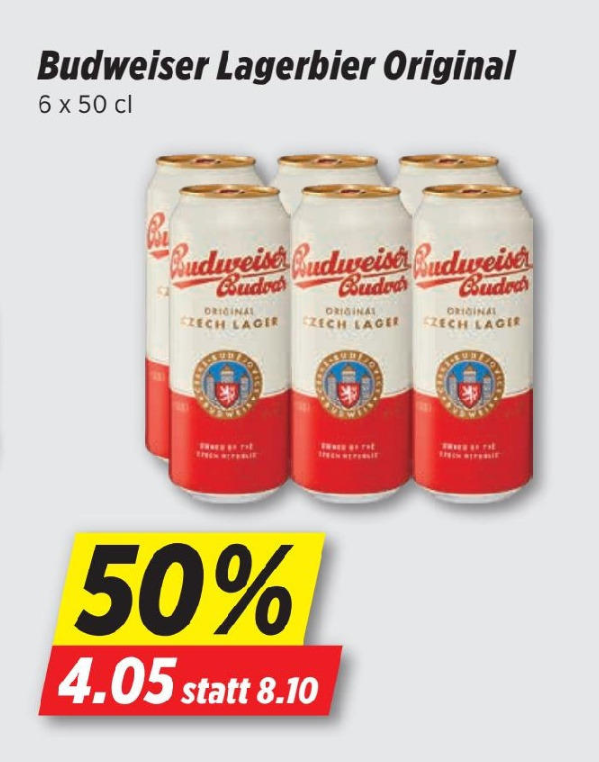 Auch interessant bei den Getränken: das tschechische Bier Budweiser! Dieses gibt’s im Sixpack à 50cl-Dosen für CHF 4.05.