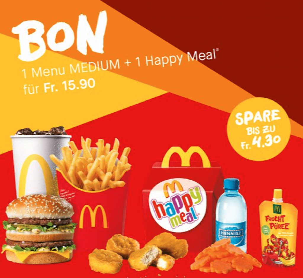 - 1x Menü Medium und 1x Happy Meal für 15.90