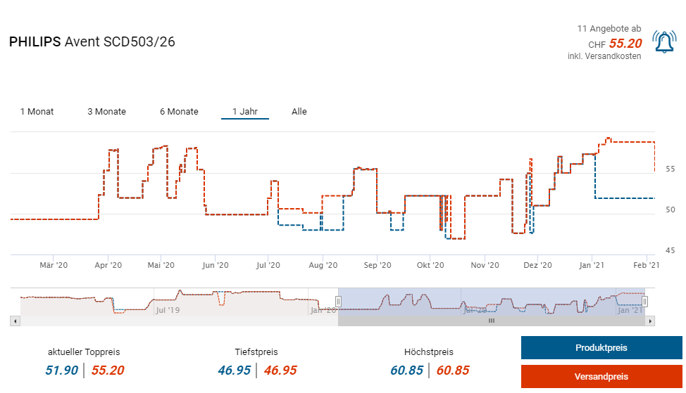 Bei philips.ch gibts derzeit das Babyphone SCD503/26 zum Aktionspreis von 59 Franken. Mit dem 20% NL-Gutschein ergibt sich dann der Dealpreis von CHF 47.20 statt CHF 55.20 laut toppreise.