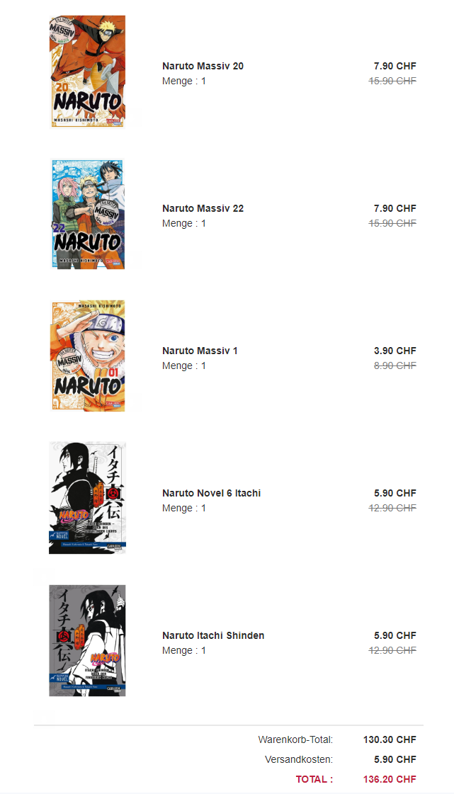 Auch der lokale Manga Shop in Luzern “Coremix” kann mit den Preisen nicht mithalten, obwohl er direkt von der Druckerei bestellt.
