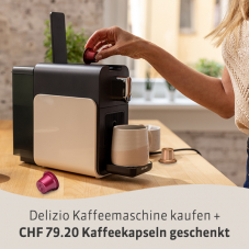 Beim Kauf einer Delizio Kaffeemaschine bekommst du aktuell 192 Kapseln im Wert von CHF 79.20 geschenkt!