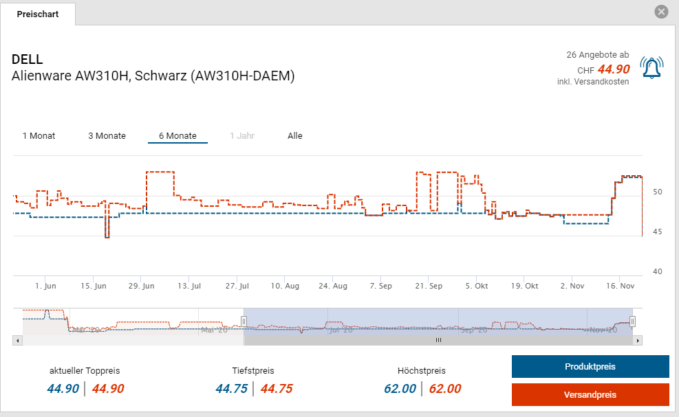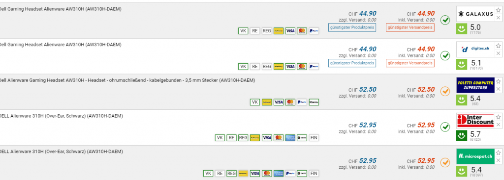 Bei Galaxus und Digitec gibt es wieder das DELL Alienware AW310H Gaming Headset für den Bestpreis von CHF 44.90. Diesen Preis gab es zuletzt im Juli. Der zweitbeste Preis beträgt CHF 52.50.