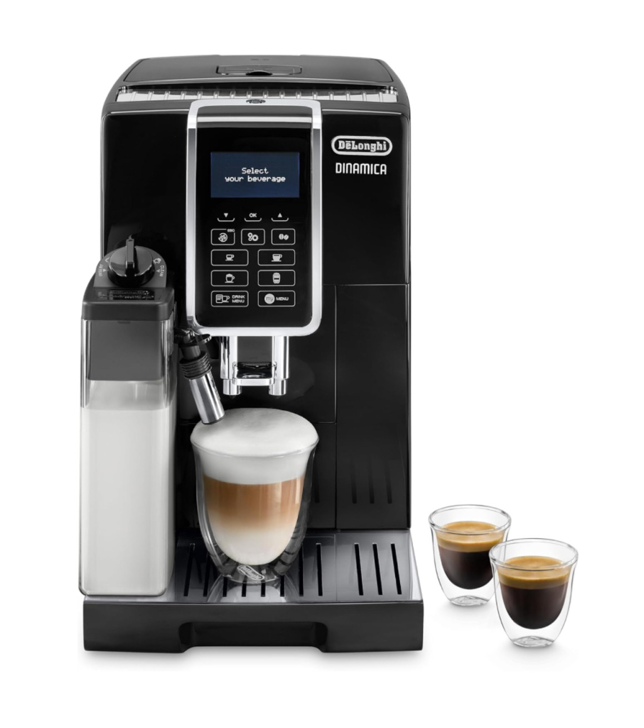 - LIEFERUMFANG: 1 x Dinamica ECAM 350.55.B, Kaffeevollautomat in Schwarz mit integriertem Milchsystem inkl. Starterset (Entkalker, Wasserfilter & Reinigungsbürste) von De’Longhi.