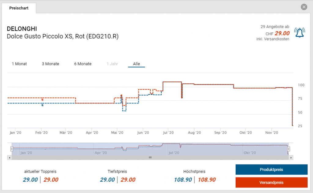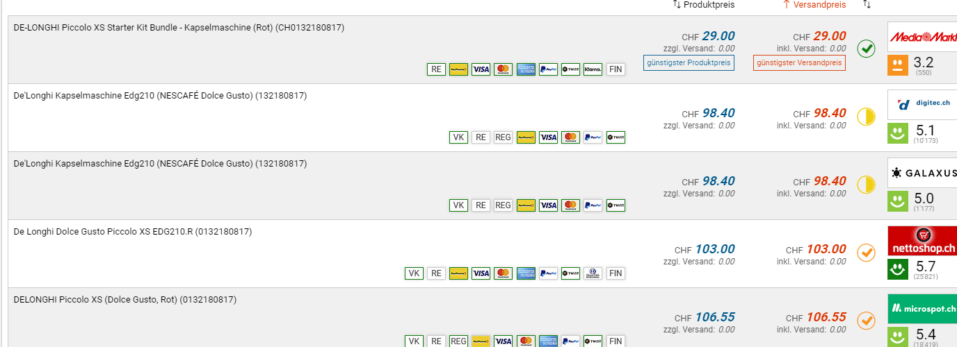 Bei Media Markt gibt es die DELONGHI Dolce Gusto Piccolo XS zum Bestpreis von CHF 29.-.! Der vorherige Bestpreis war CHF 65.80. Der zweitbeste Preis beträgt CHF 98.40.