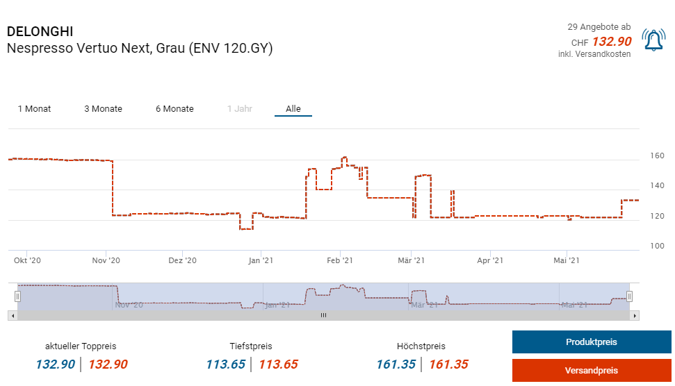 Bei Manor gibts derzeit die Nespressomaschine Vertuo Next ENV120 in den Farben Grau und Weiss jetzt noch günstiger. So zahlen Besitzer der Manor-Card in Kombination mit dem Newsletter-Gutschein gerade einmal CHF 105.10.