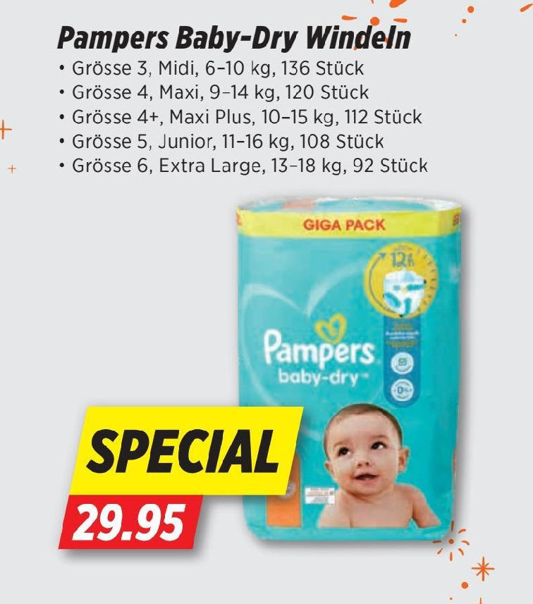 Pampers Baby Dry , Grösse 5, Junior, 11-16 kg, 108 Stück für CHF 29.95