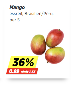 Ebenfalls interessant: Ihr könnt Mangos für 99 Rappen pro Stück sichern, gefüllte Donuts gibt’s für 65 Rappen pro Stück.