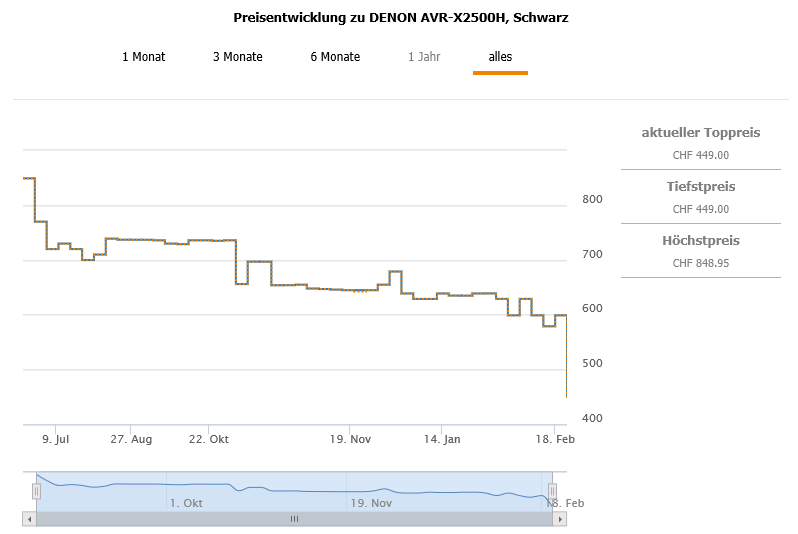 Bei digitec gibt es aktuell 60 Stück des DENON AVR-X2500H, Schwarz für je 449.- CHF.