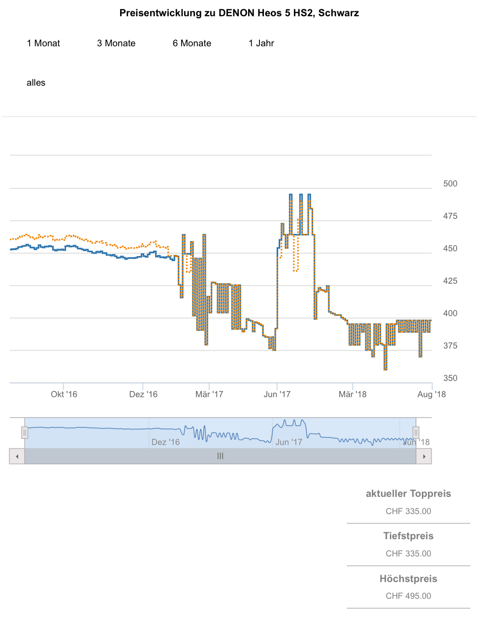 Der zweitbeste Preis sind aktuell 369.95 CHF, günstiger als für 359.90 CHF gab es den Lautsprecher bislang noch nie.