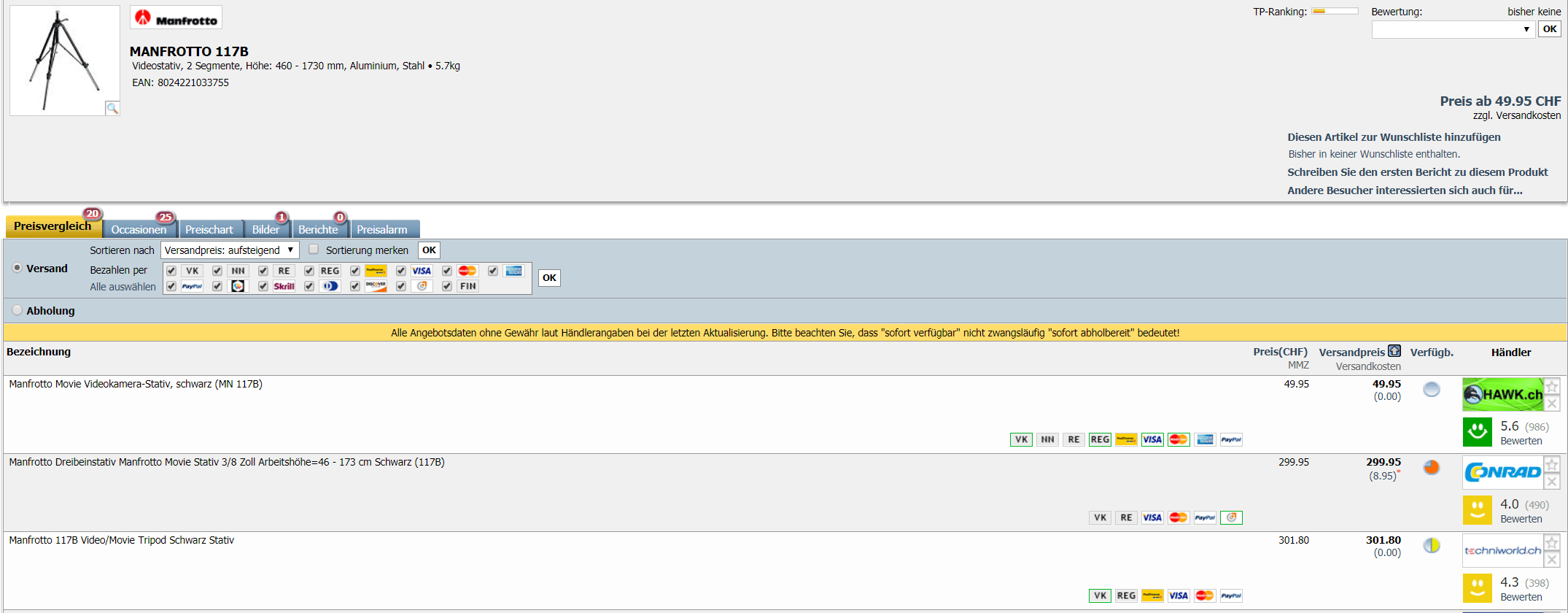Manfrotto 117B für CHF 49.95.- nächst höherer Preis 299.95 bei Conrad.ch